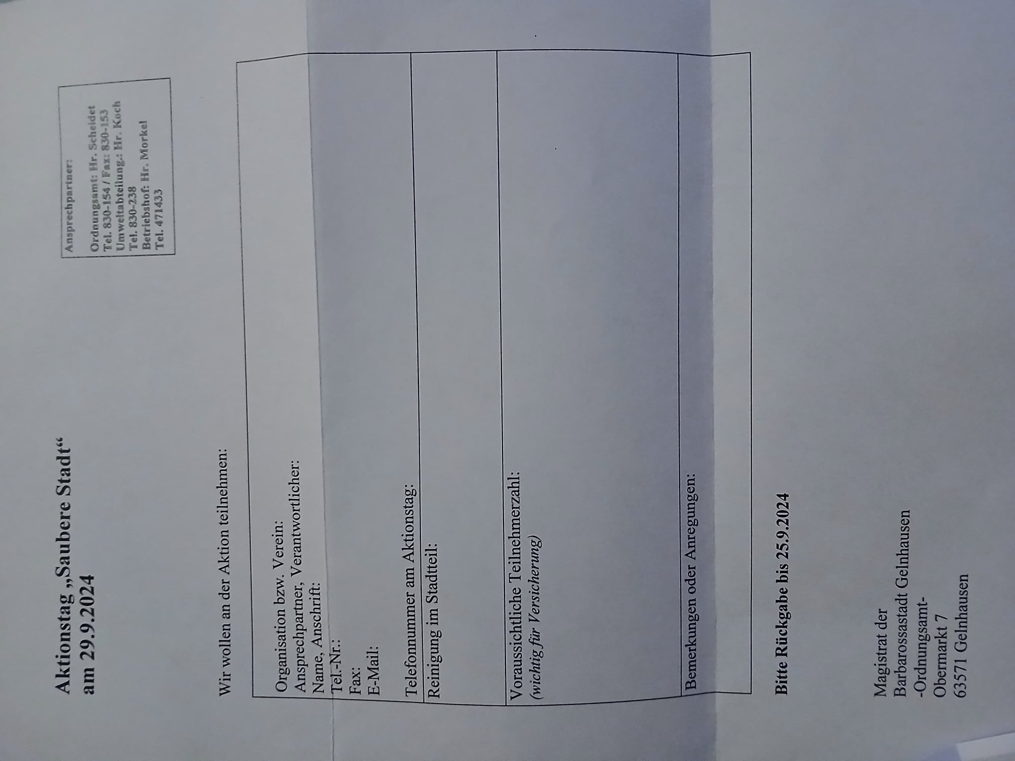 Es wird um Anmeldung gebeten. Hierzu haben wir ein Formular erhalten, welches bis zum 25.09.24 (Mittwoch) wieder bei der Stadt eingereicht werden soll.